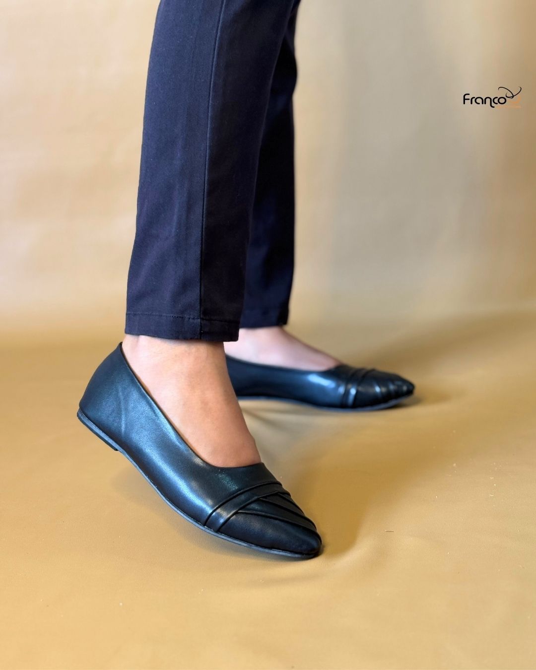 Pointed-toe flats with subtle pleated detail. A clean, versatile design for everyday wear.